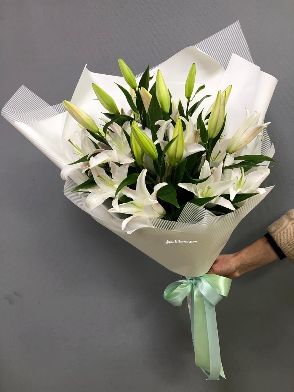 Ürün Kodu: FK-2017 Dal Beyaz Lilyumlardan Şık Buket • Bu ürünün dağıtımı sadece Antalya Kemer, Göynük, Beldibi, Kiriş, Çamyuva, Tekirova, Beycik, Olimpos, Çıralı, Adrasan içine yapılmaktadır. • Teslimat bilgisi SMS ve E-posta ile ücretsiz olarak sağlanmaktadır.