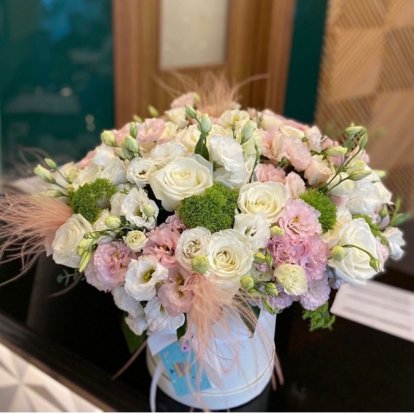 Ürün Kodu: FK-344Beyaz Kutuda Lisyantus pembe beyaz beyaz gül