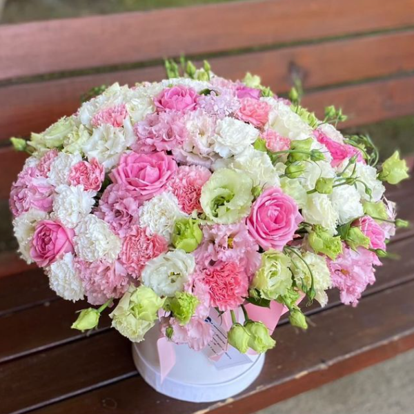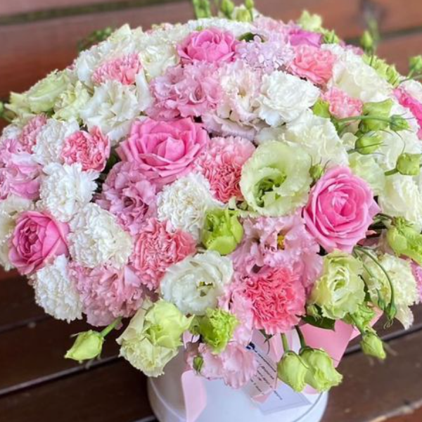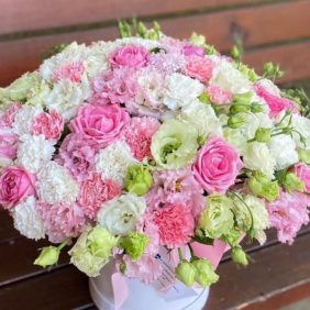 Produktcode: FK-384Großes weiß-rosa Lisyantus-Rosen-Arrangement