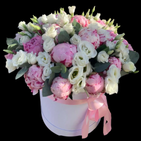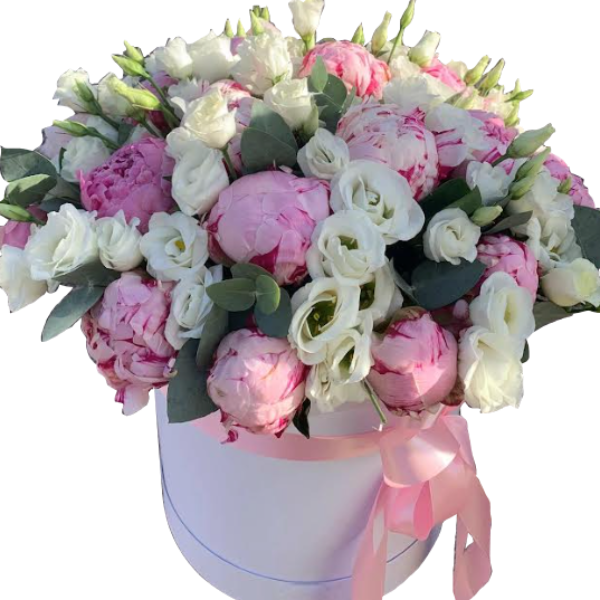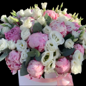 Produktcode: FK-410Pfingstrosenrosa und Lisianthus-Boxarrangement