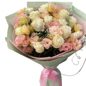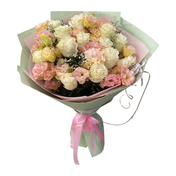 Produktcode: FK-393Rosa-weißer Lisianthus-Rosenstrauß