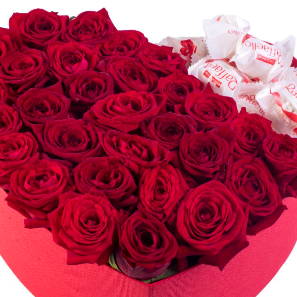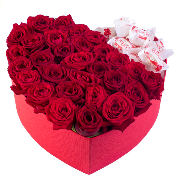 Produktcode: FK-381Rose & Raffaello in roter Herzbox