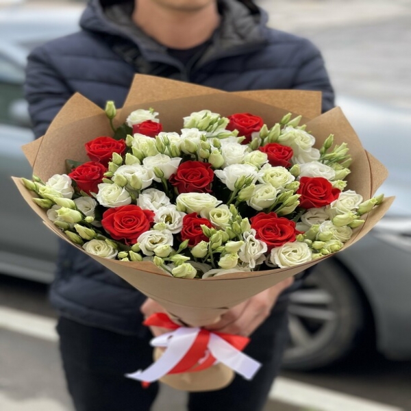 Produktcode: FK-34311 rote Rosen und 15 Eustoma-Sträuße