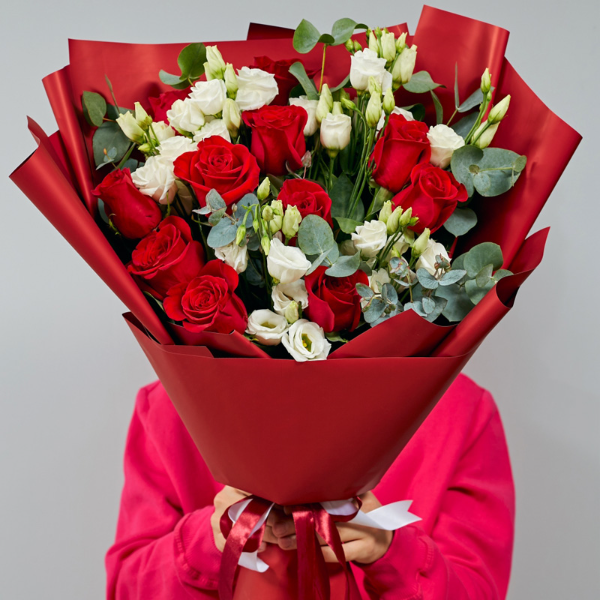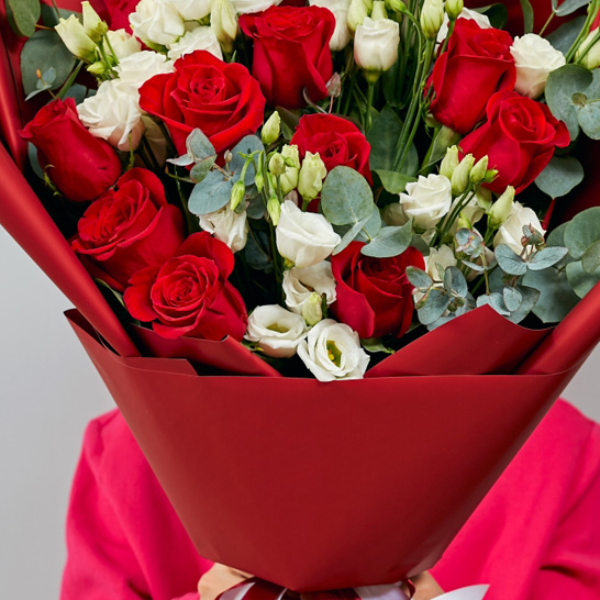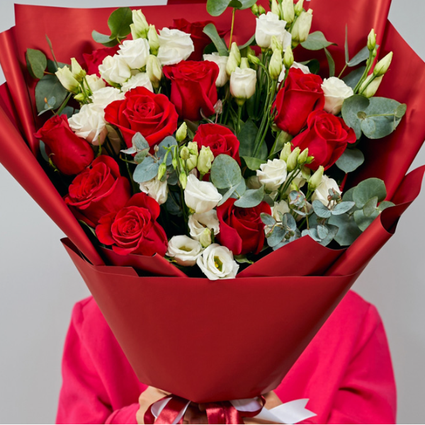 Produktcode: FK-361Strauß roter Rosen 11 stück und weißer Lisianthus 7 stück