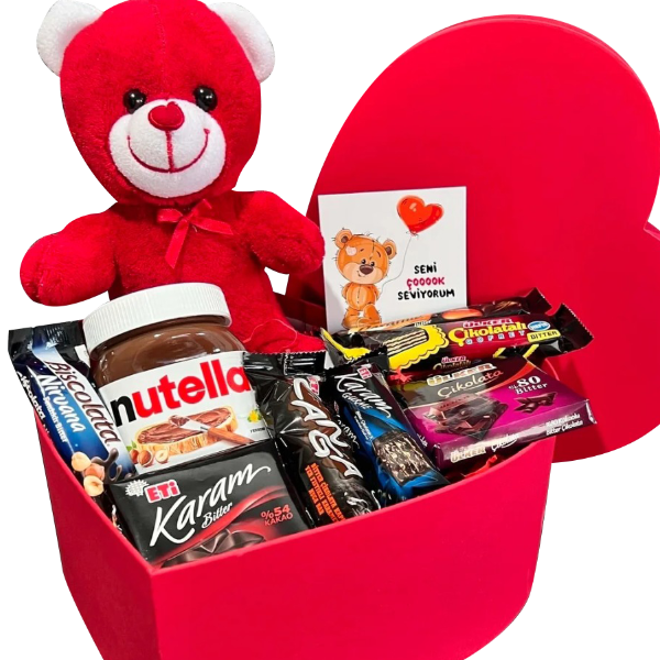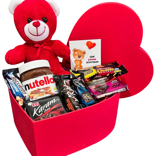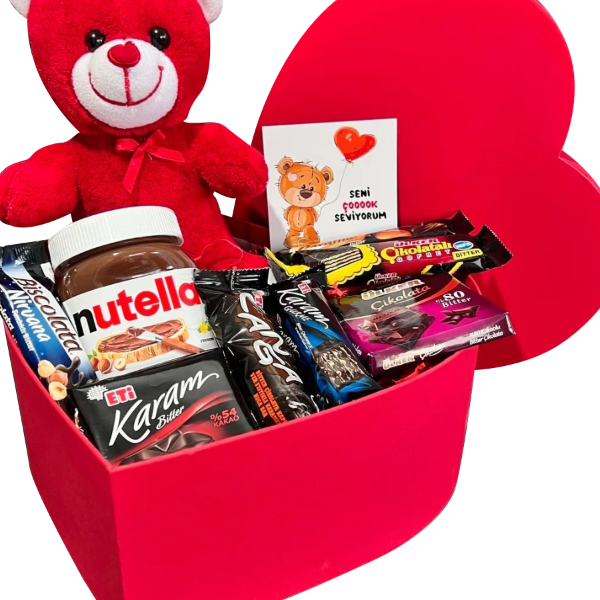Product code: FK-416Sweet Gifts and Teddy Bear in Heart Box This product is only avaliable for Antalya Kemer, Goynuk, Beldibi, Kiris, Camyuva, Tekirova, Olimpos, Cıralı,