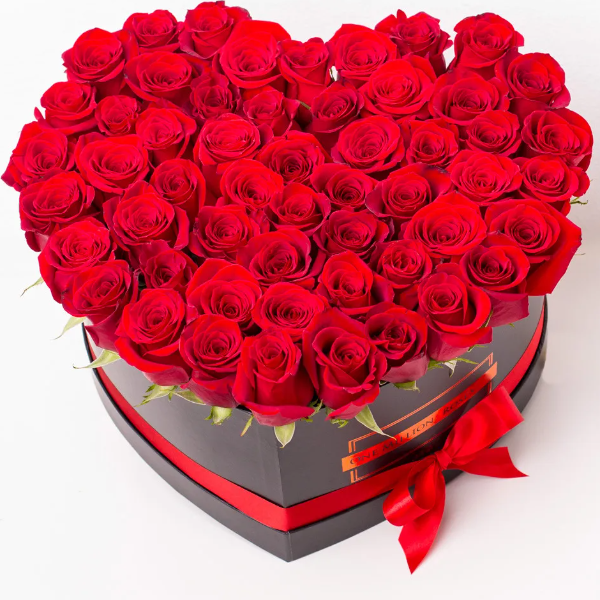 Ürün Kodu: FK-380Kalp siyah Kutuda 51 Adet Kırmızı Gül